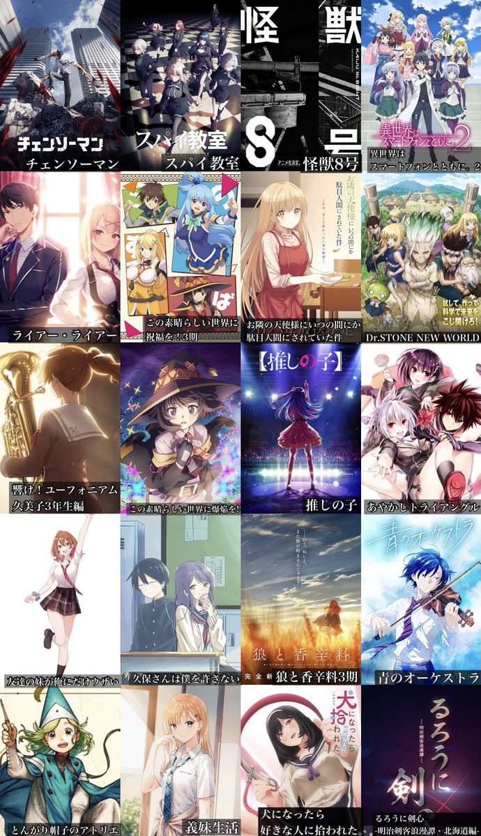 わりと楽しみなアニメ多いけどなwチェンソーマンと怪獣8号のクオリティに期待。